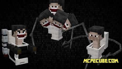 Frightening huge mobs will appear on the territory of Minecraft PE. They communicate in a language unknown to the gamer from the Skibidi Toilet 2 mod.